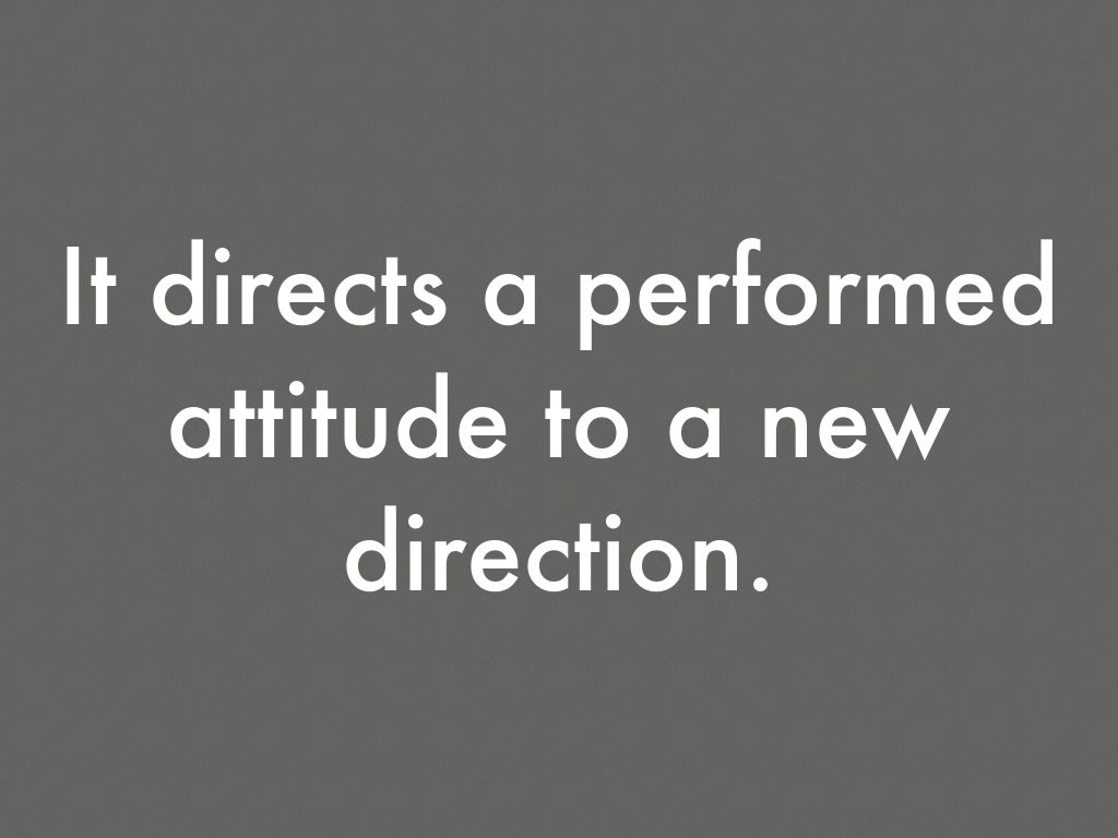It directs a performed attitude to a new direction.