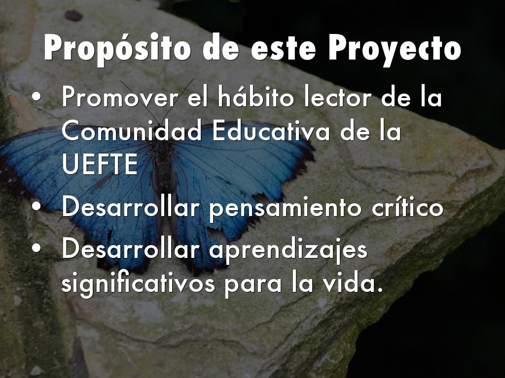 Este Proyecto ha sido creado con el propósito de promover el hábito lector en la comunidad educativa de la UEFTE para desarrollar el pensamiento crítico y el aprendizaje significativo.