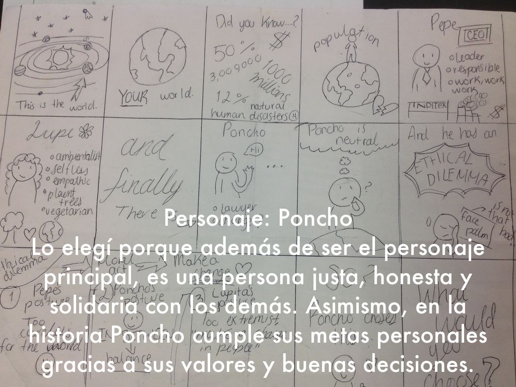 Lo elegí porque además de ser el personaje principal, es una persona justa, honesta y solidaria con los demás. Asimismo, en la historia Poncho cumple sus metas personales gracias a sus valores y buenas decisiones.