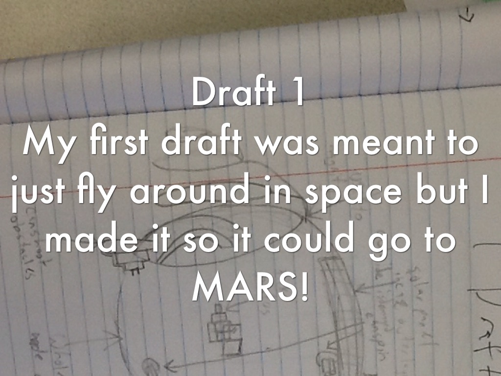 My first draft was meant to just fly around in space but I made it so it could go to MARS!