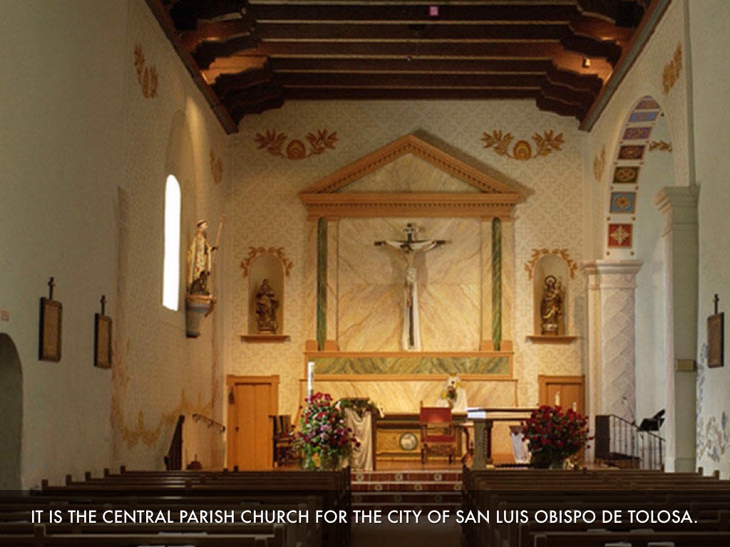 IT IS THE CENTRAL PARISH CHURCH FOR THE CITY OF SAN LUIS OBISPO DE TOLOSA.