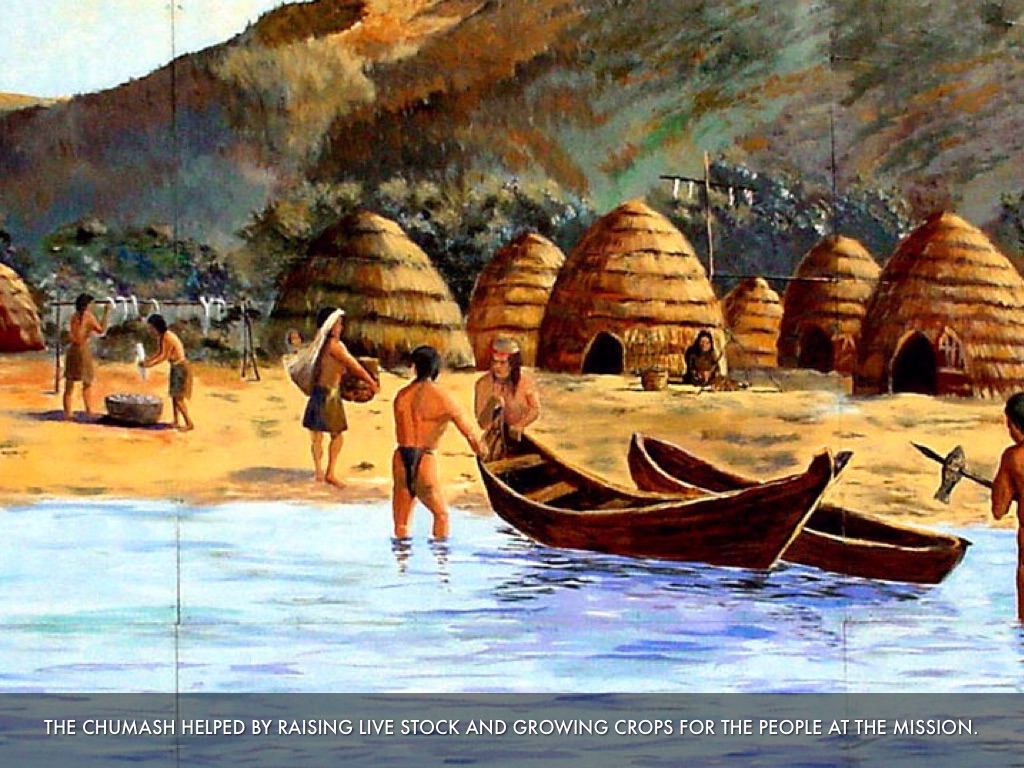 THE CHUMASH HELPED BY RAISING LIVE STOCK AND GROWING CROPS FOR THE PEOPLE AT THE MISSION.