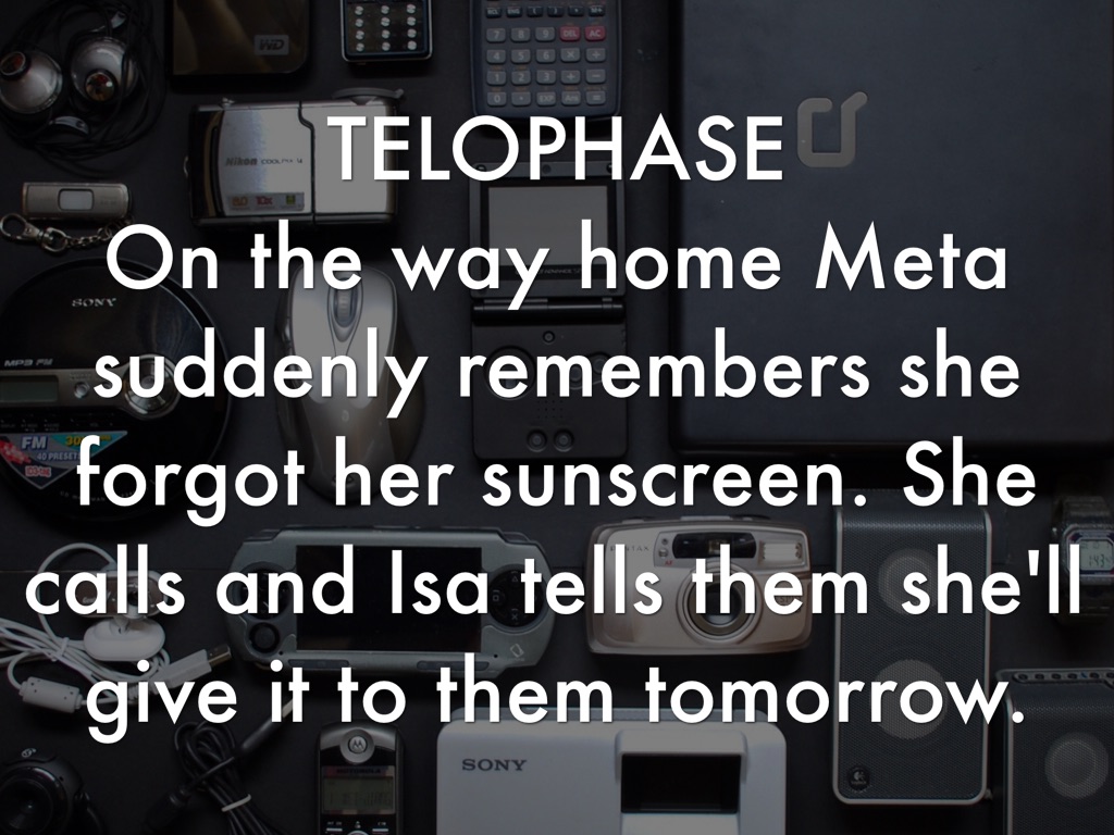 On the way home Meta suddenly remembers she forgot her sunscreen. She calls and Isa tells them she'll give it to them tomorrow.