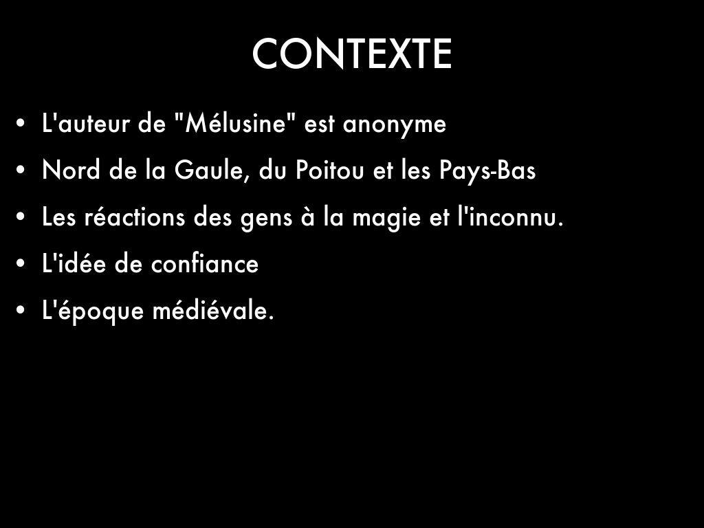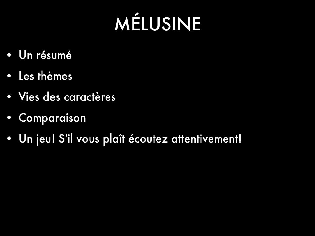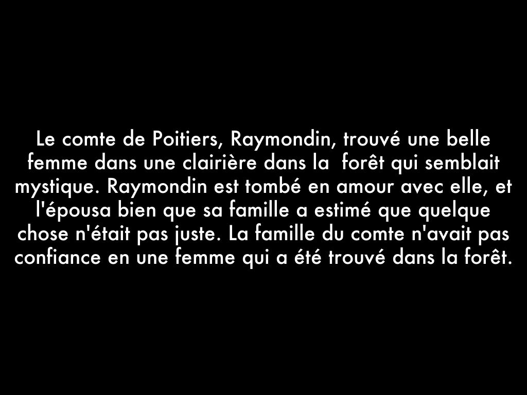 Le comte de Poitiers, Raymondin, trouvé une belle femme dans une clairière dans la forêt qui semblait mystique. Raymondin est tombé en amour avec elle, et l'épousa bien que safamille a estimé que quelque chose n'était pas juste.