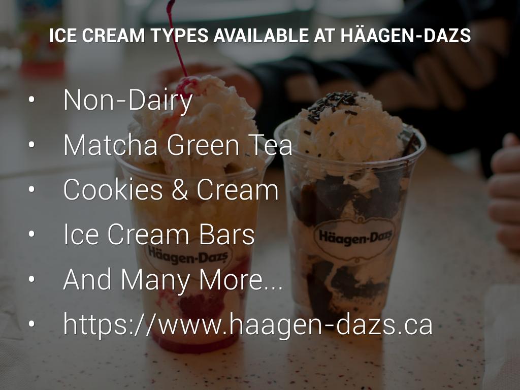 ICE CREAM TYPES AVAILABLE AT HÄAGEN-DAZS