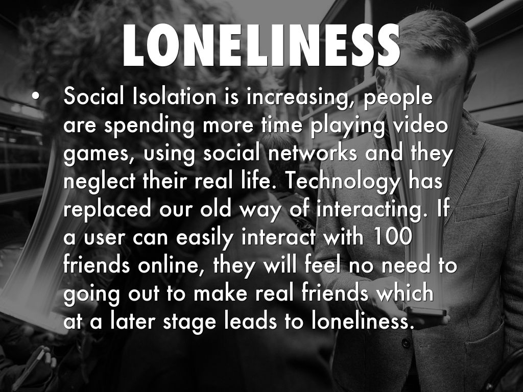 Social Isolation is increasing, people are spending more time playing video games, using social networks and they neglect their real life. Technology has replaced our old way of interacting. If a user can easily interact with 100 friends online, they will feel no need to going out to make real friends which at a later stage leads to loneliness.