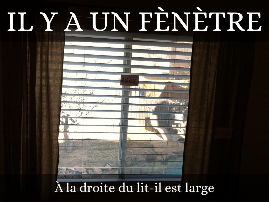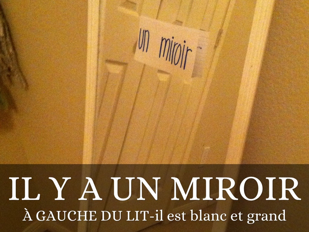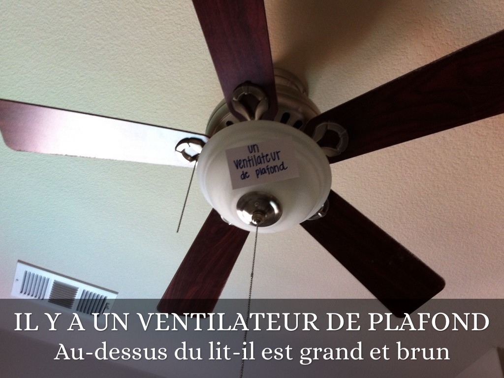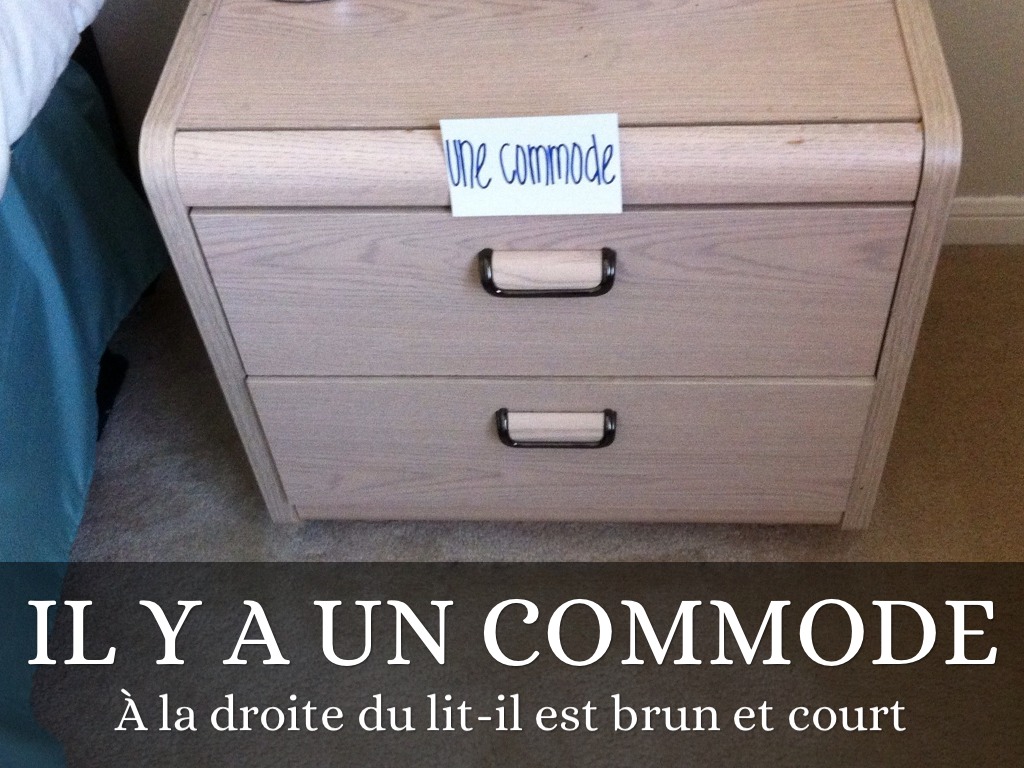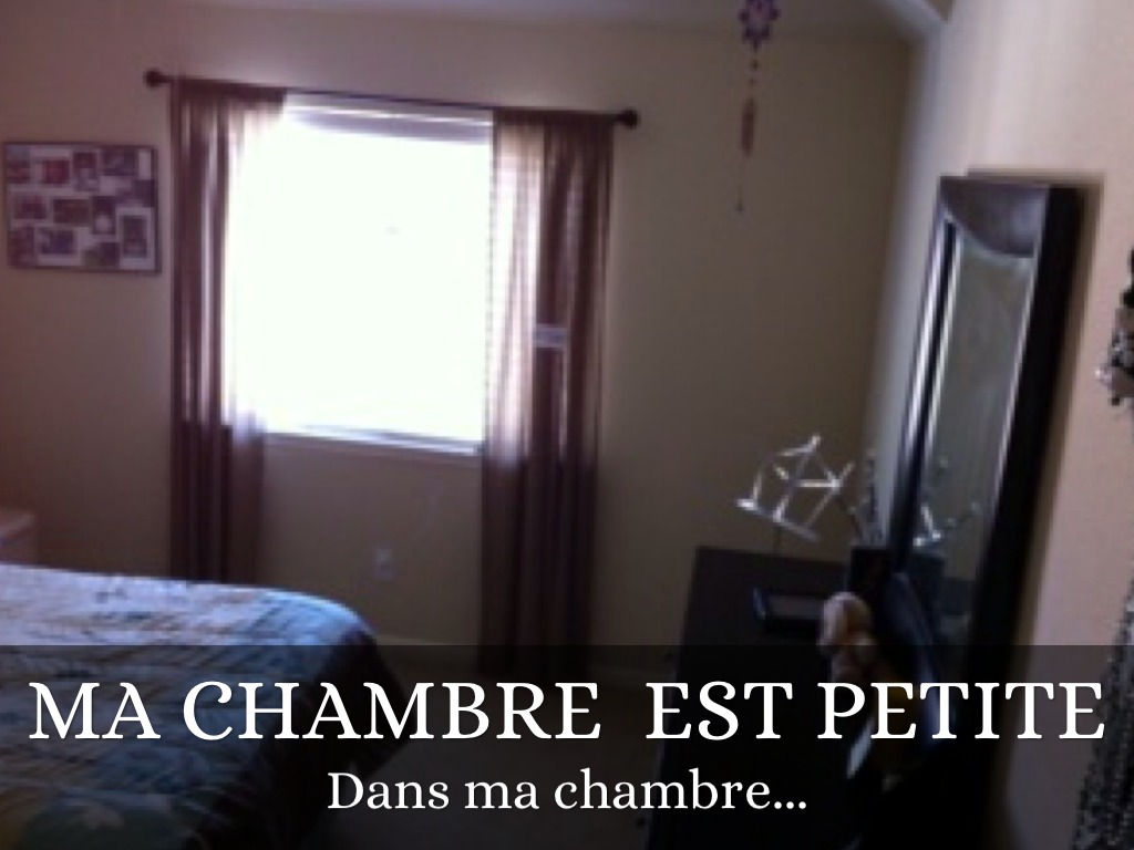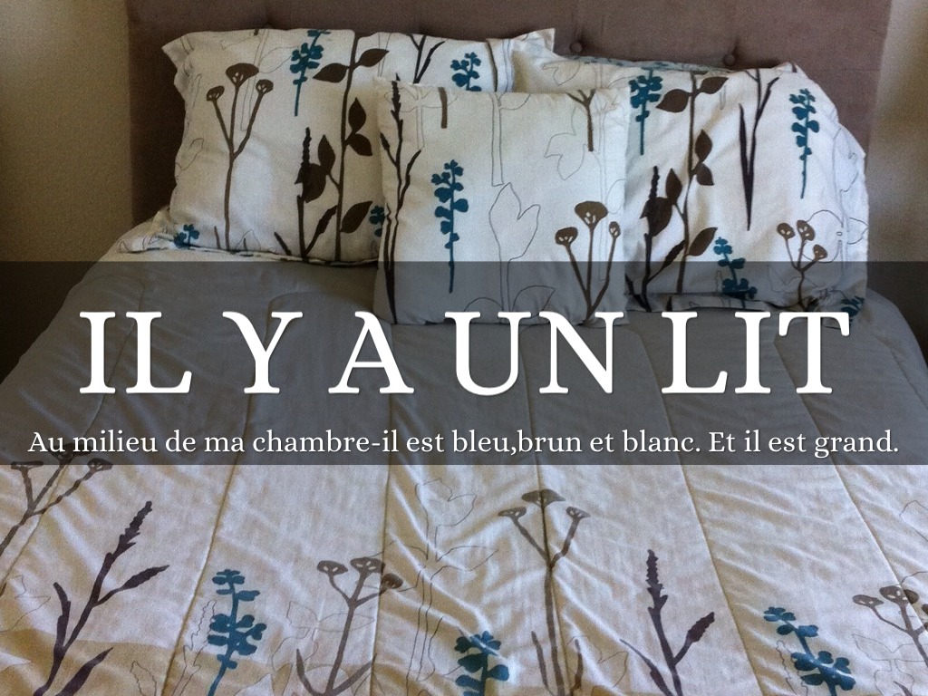 Au milieu de ma chambre-il est bleu,brun et blanc. Et il est grand.