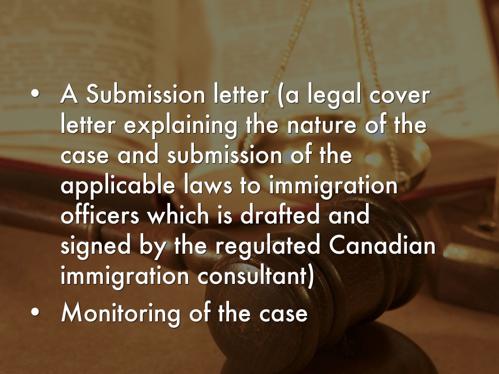 A Submission letter (a legal cover letter explaining the nature of the case and submission of the applicable laws to immigration officers which is drafted and signed by the regulated Canadian immigration consultant)