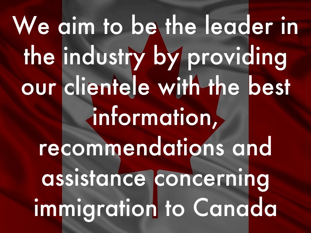 We aim to be the leader in the industry by providing our clientele with the best information, recommendations and assistance concerning immigration to Canada