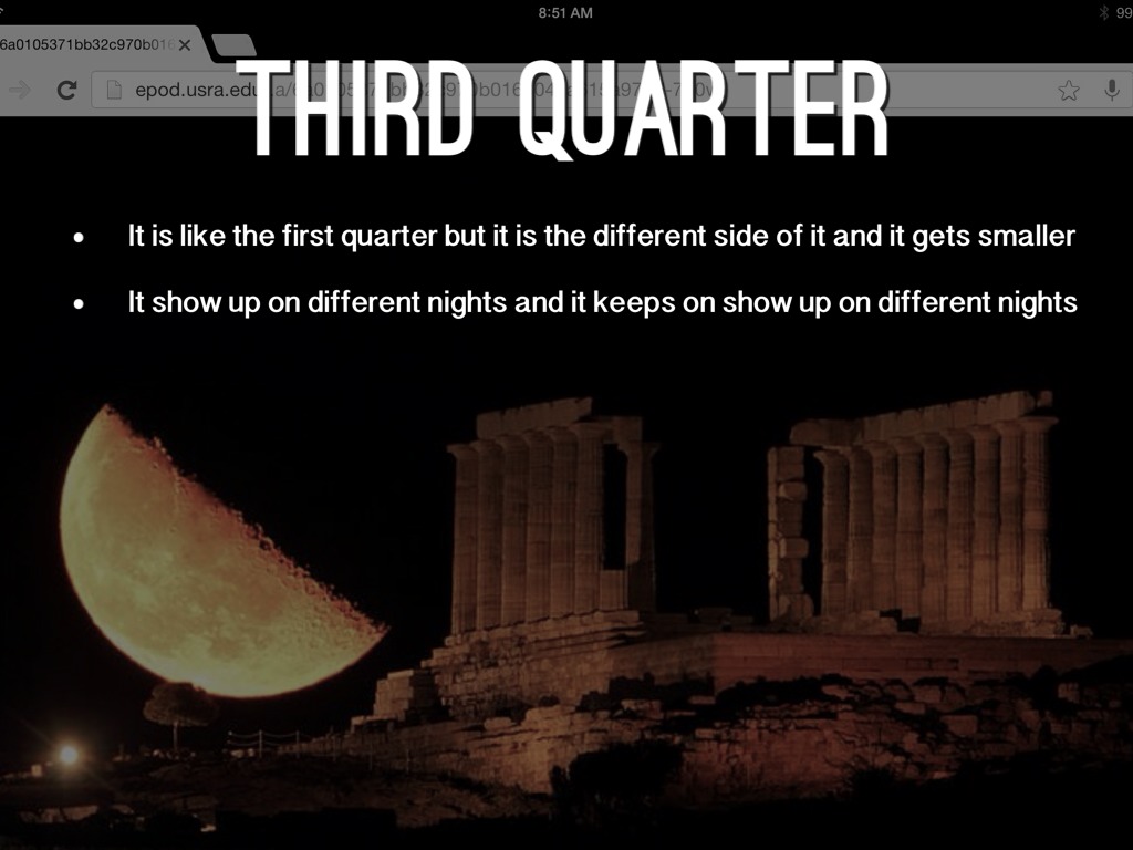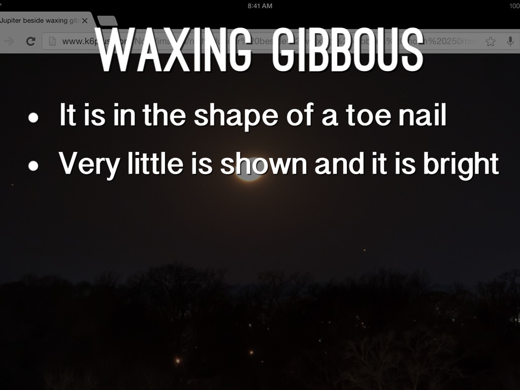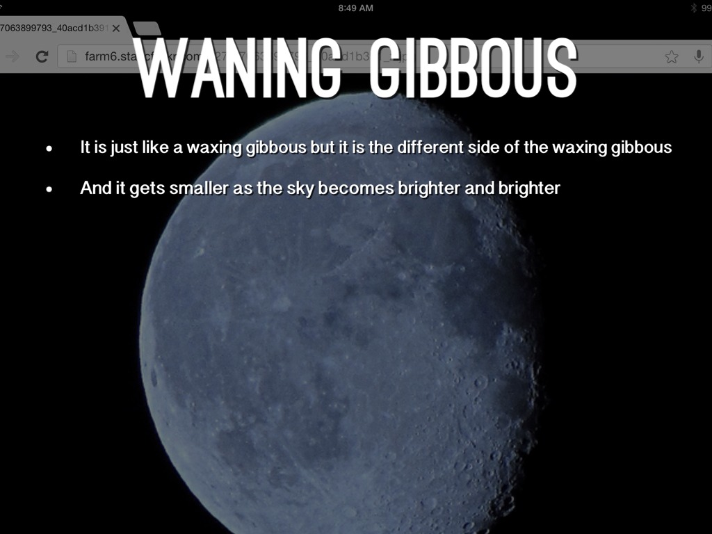 It is just like a waxing gibbous but it is the different side of the waxing gibbous