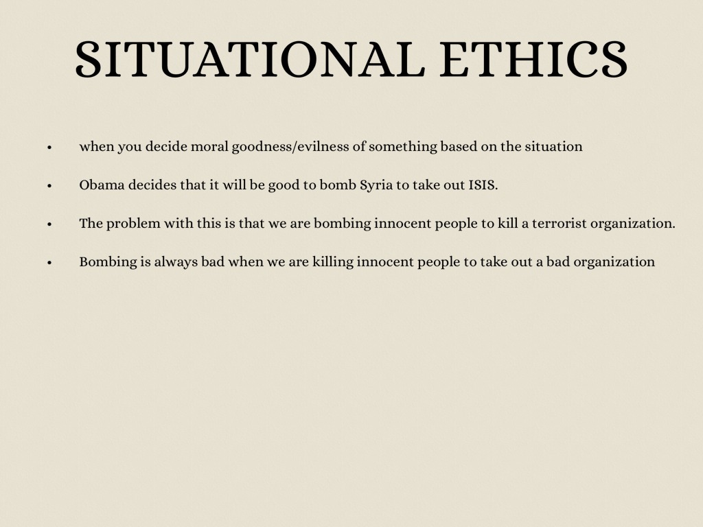• Bombing is always bad when we are killing innocent people to take out a bad organization