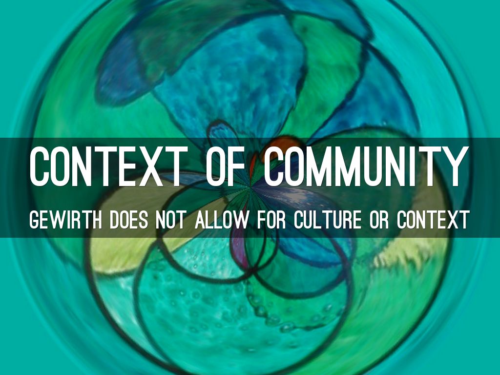 GEWIRTH DOES NOT ALLOW FOR CULTURE OR CONTEXT