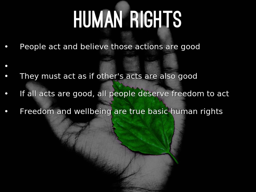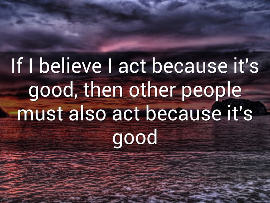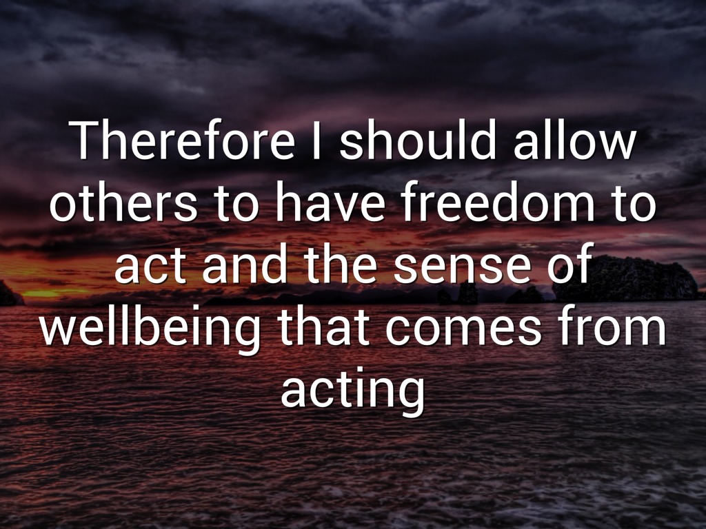 Therefore I should allow others to have freedom to act and the sense of wellbeing that comes from acting