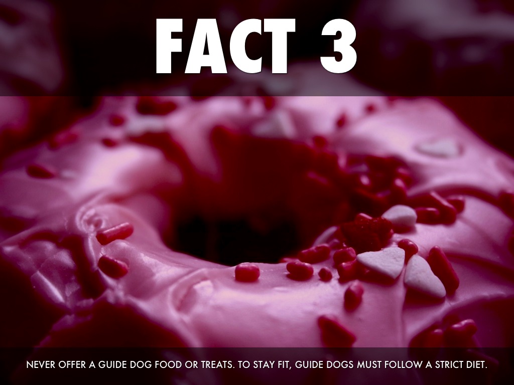 NEVER OFFER A GUIDE DOG FOOD OR TREATS. TO STAY FIT, GUIDE DOGS MUST FOLLOW A STRICT DIET.