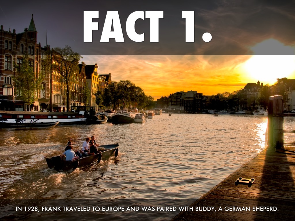 IN 1928, FRANK TRAVELED TO EUROPE AND WAS PAIRED WITH BUDDY, A GERMAN SHEPERD.