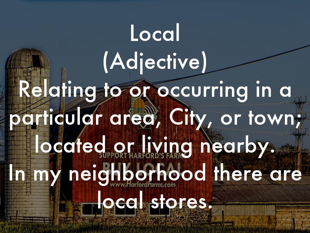 Relating to or occurring in a particular area, City, or town; located or living nearby.