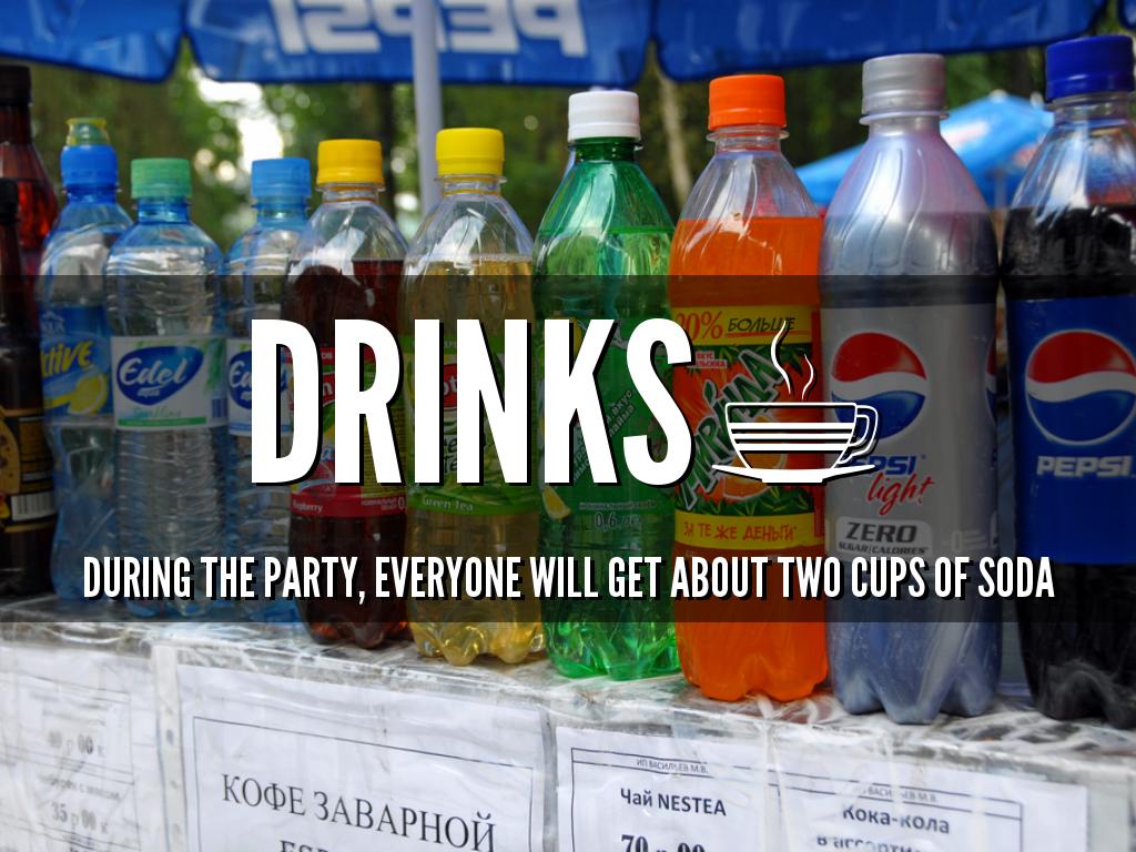 DURING THE PARTY, EVERYONE WILL GET ABOUT TWO CUPS OF SODA