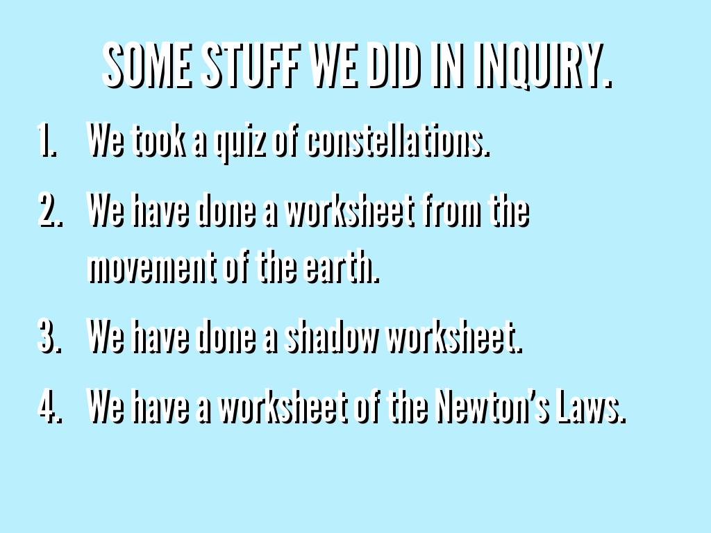 They are all related by the galaxy because shadows come from the sun which is a star after the Big Bang. The Earth is a planet that has living things. We see constellation because we face away from the sun and it depends what season it is to. Gravity pulls us toward the Earth.