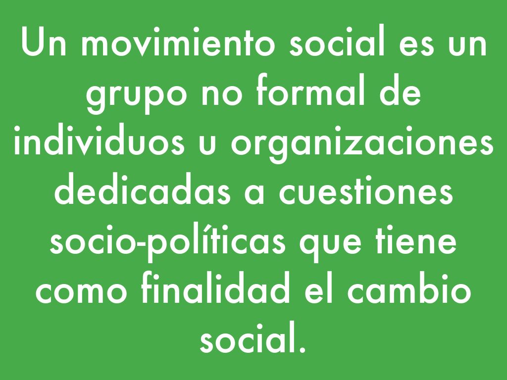 Un movimiento social es un grupo no formal de individuos u organizaciones dedicadas a cuestiones socio-políticas que tiene como finalidad el cambio social.