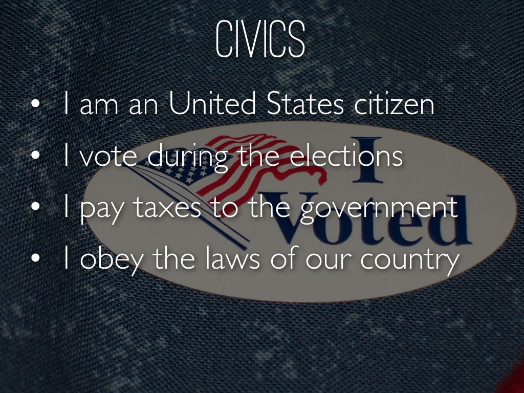 I abide by the government of the USA including the legislative, judicial and executive branches