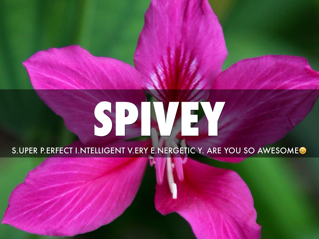 S.UPER P.ERFECT I.NTELLIGENT V.ERY E.NERGETIC Y. ARE YOU SO AWESOME😀