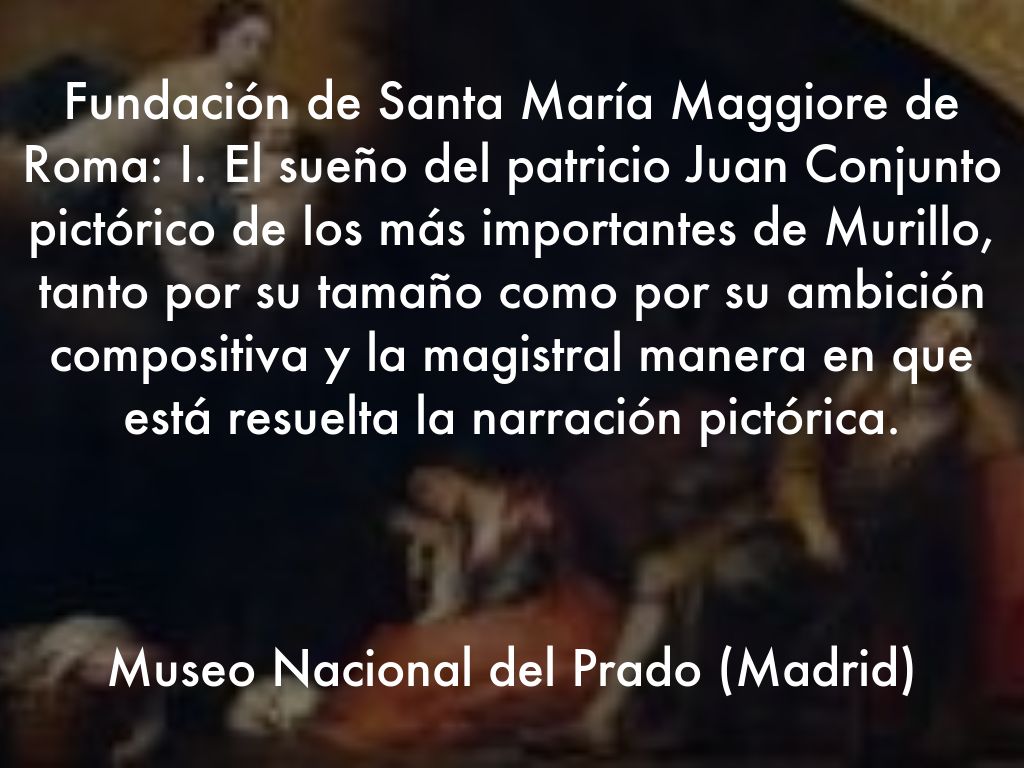 Fundación de Santa María Maggiore de Roma: I. El sueño del patricio Juan Conjunto pictórico de los más importantes de Murillo, tanto por su tamaño como por su ambición compositiva y la magistral manera en que está resuelta la narración pictórica.