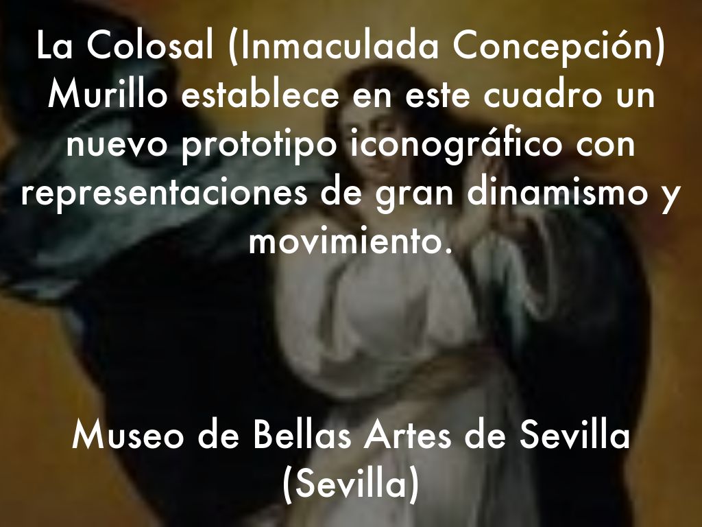 La Colosal (Inmaculada Concepción) Murillo establece en este cuadro un nuevo prototipo iconográfico con representaciones de gran dinamismo y movimiento.