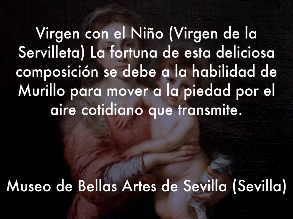 Virgen con el Niño (Virgen de la Servilleta) La fortuna de esta deliciosa composición se debe a la habilidad de Murillo para mover a la piedad por el aire cotidiano que transmite.