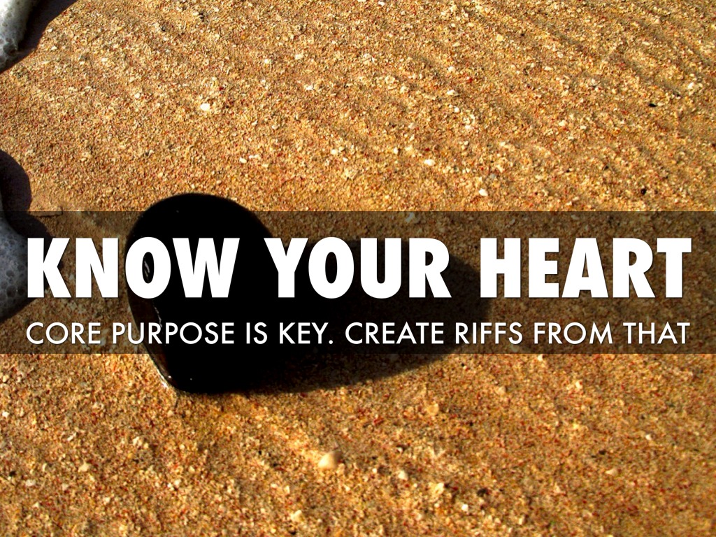 CORE PURPOSE IS KEY. CREATE RIFFS FROM THAT