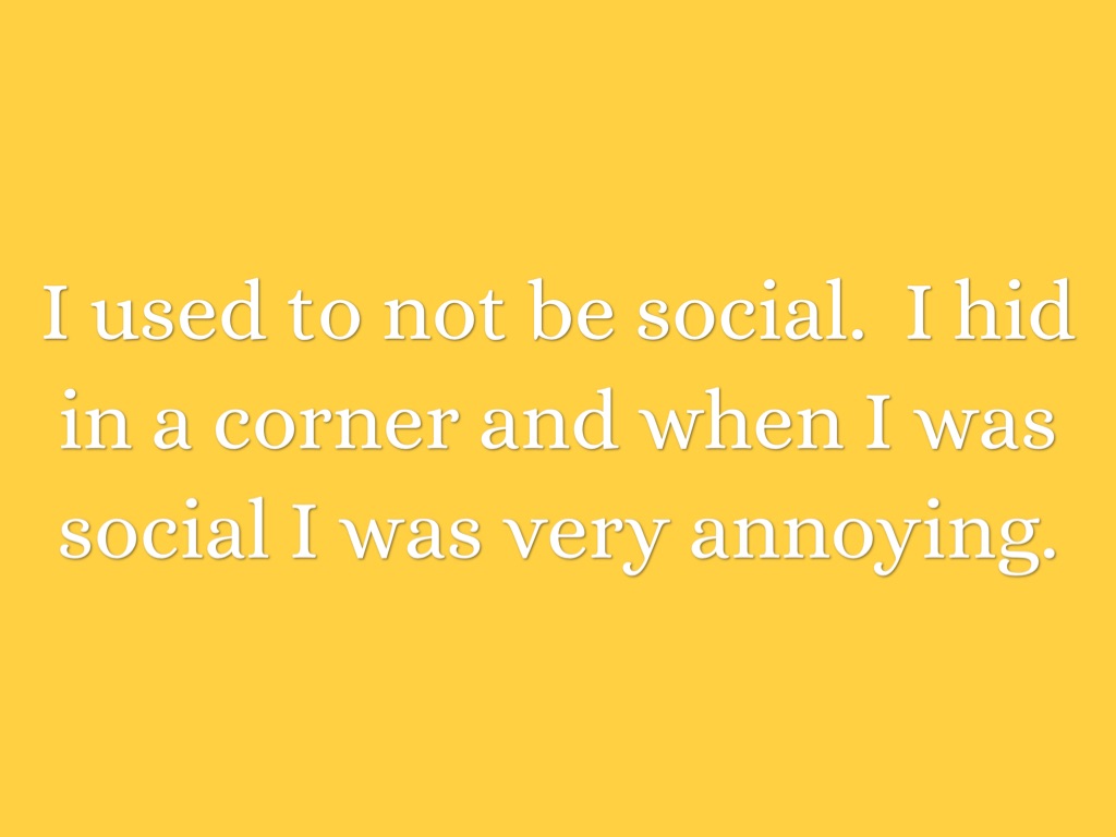 I used to not be social. I hid in a corner and when I was social I was very annoying.