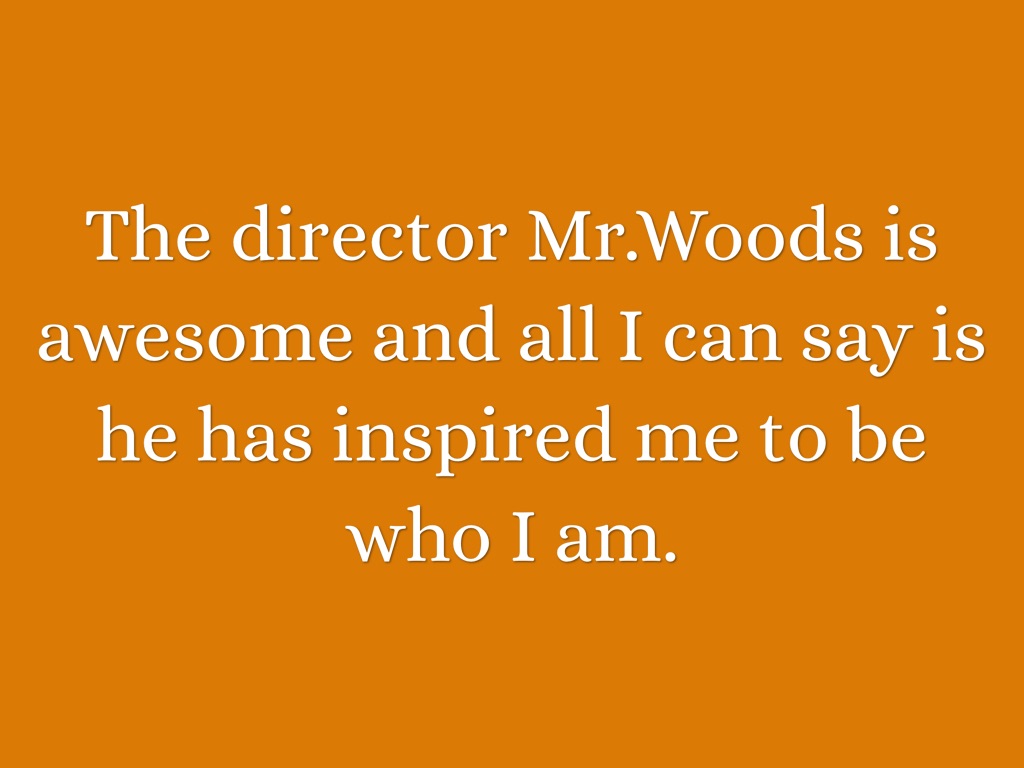 The director Mr.Woods is awesome and all I can say is he has inspired me to be who I am.