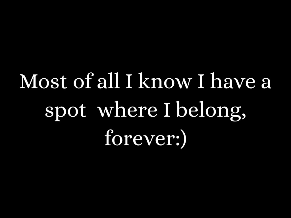 Most of all I know I have a spot where I belong, forever:)