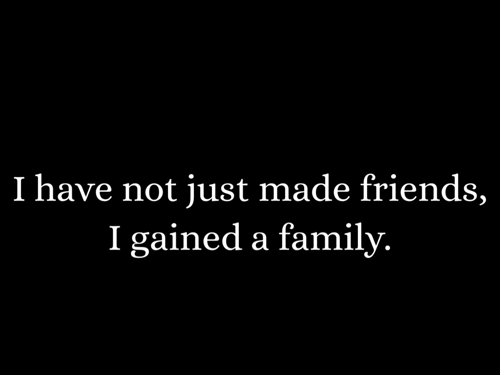 I have not just made friends, I gained a family.