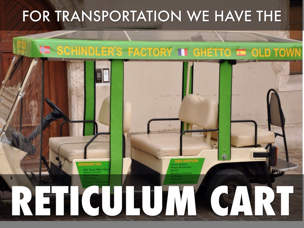 The job of the endoplasmic reticulum is to transport proteins made by ribosomes. there are two types of E.R. there is rough and smooth. Rough E.R. is the one where there are ribosomes attached to it. Smooth E.R. doesn't have ribosomes. A cart is like the endoplasmic reticulum because it is a form of transpotprtation.