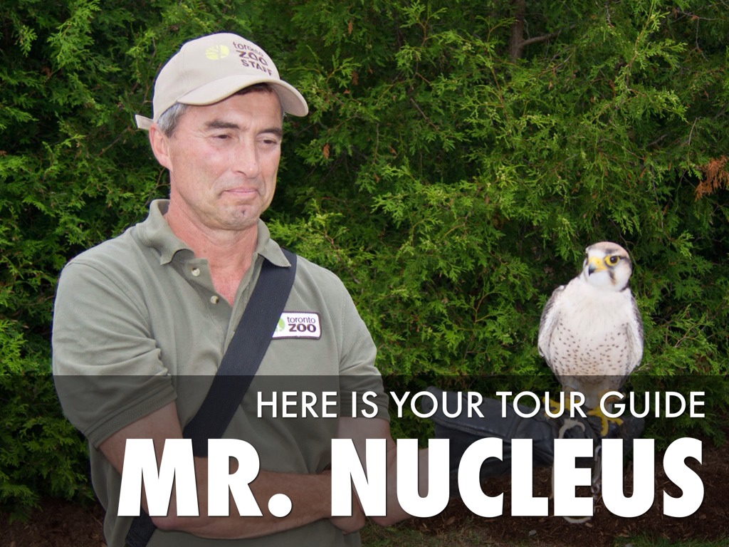 The job of the nucleus is to be the leader and tell every organelle what to do. The nucleus is also the place where DNA is found which is information about the organism. A tour guide is like the nucleus because the tour guide tells you what to do and what not to do and gives you information about the animals.