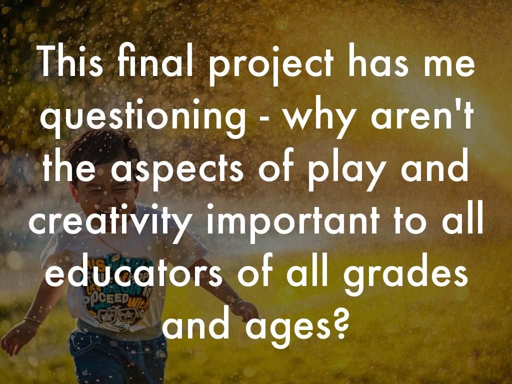 The research shows that play is crucial to all ages of children and adults yet as students become older, the amount of play in classrooms is often minimal