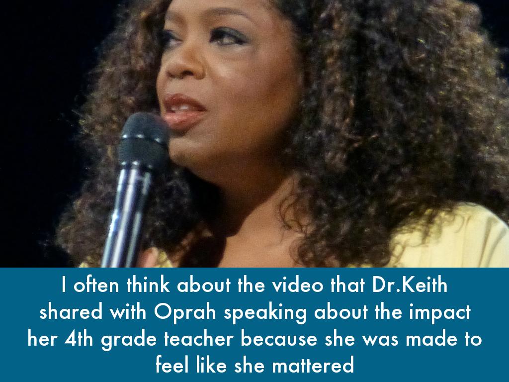 I often think about the video that Dr.Keith shared with Oprah speaking about the impact her 4th grade teacher because she was made to feel like she mattered