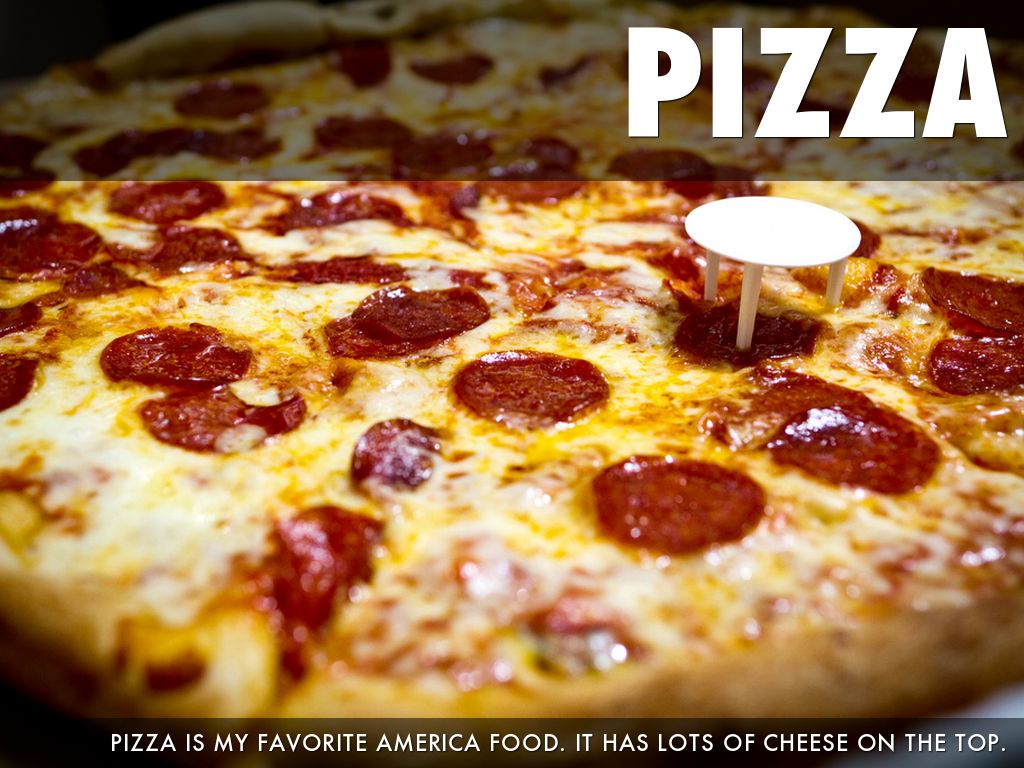 PIZZA IS MY FAVORITE AMERICA FOOD. IT HAS LOTS OF CHEESE ON THE TOP.