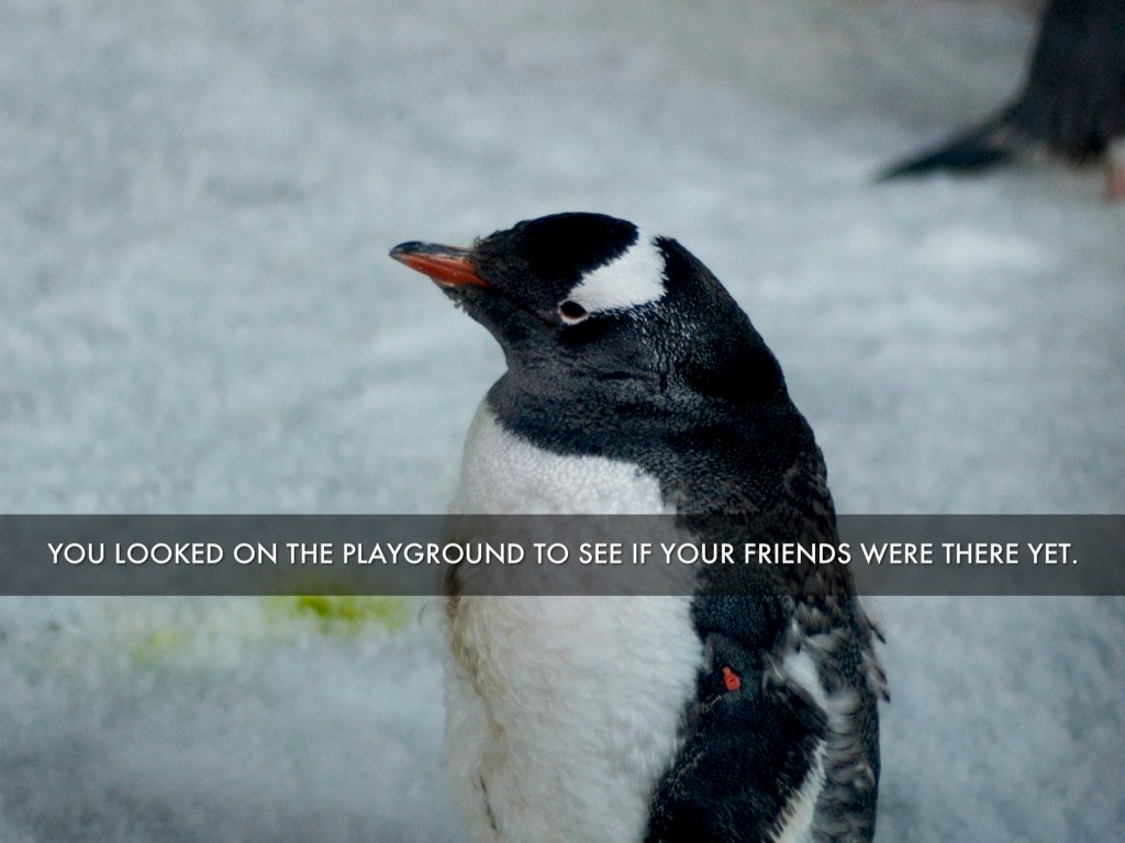YOU LOOKED ON THE PLAYGROUND TO SEE IF YOUR FRIENDS WERE THERE YET.