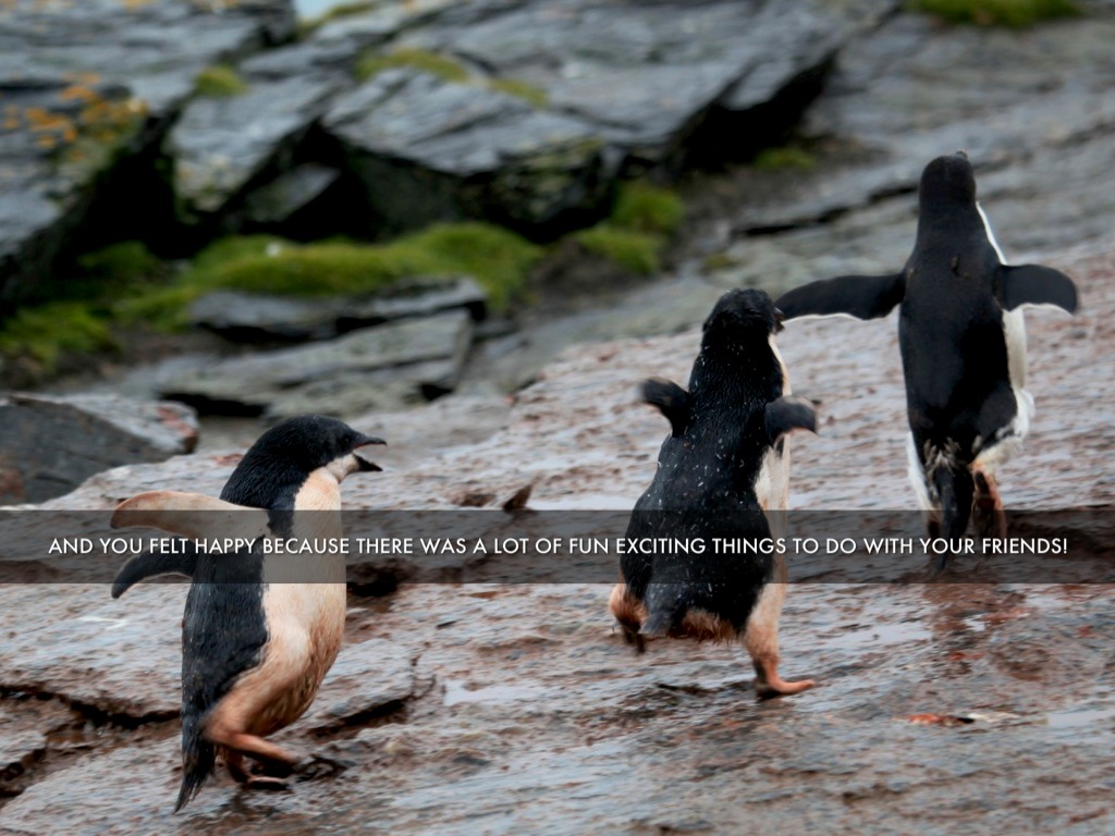 AND YOU FELT HAPPY BECAUSE THERE WAS A LOT OF FUN EXCITING THINGS TO DO WITH YOUR FRIENDS!