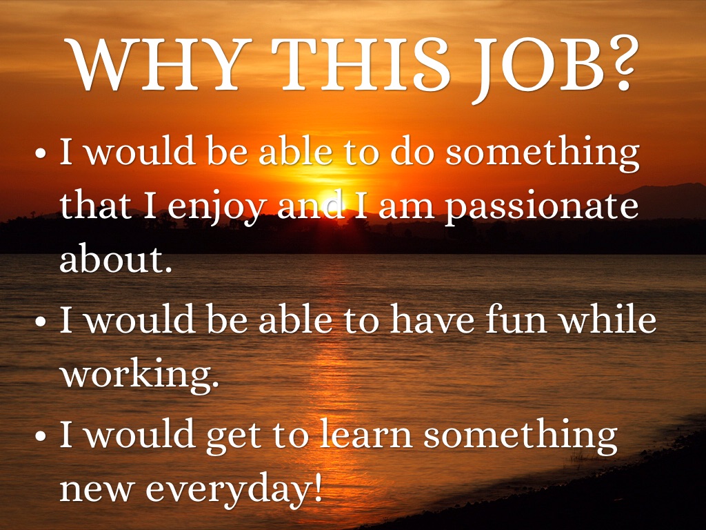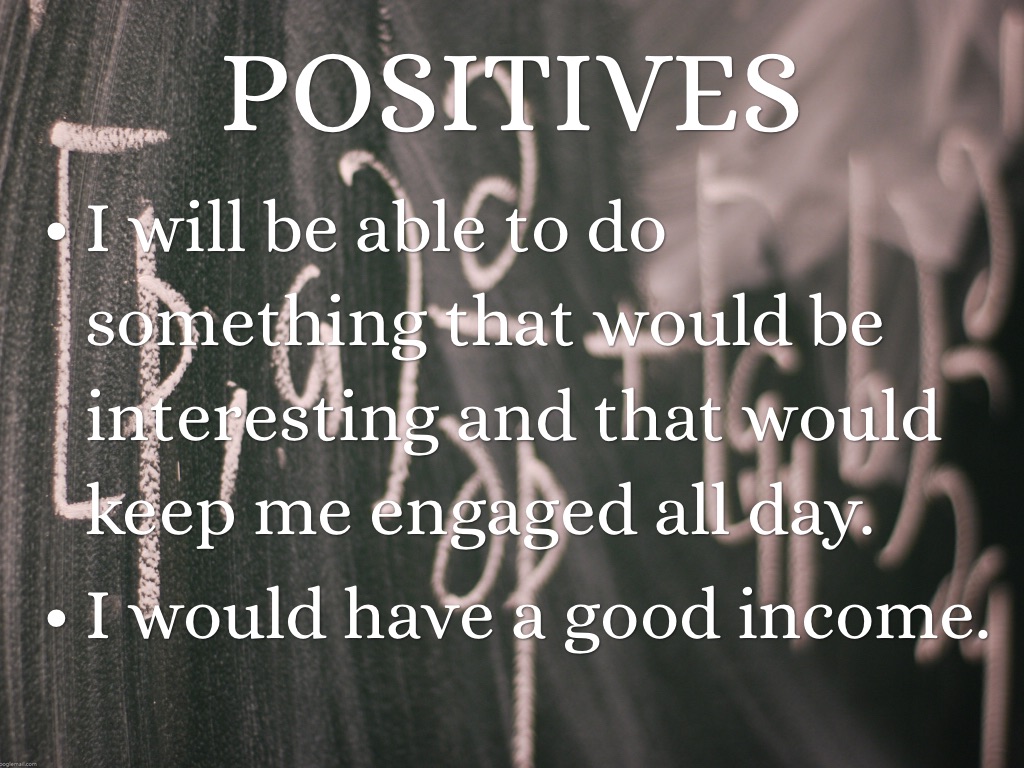 I will be able to do something that would be interesting and that would keep me engaged all day.