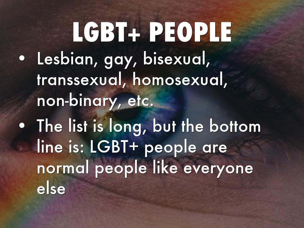 Lesbian, gay, bisexual, transsexual, homosexual, non-binary, etc.