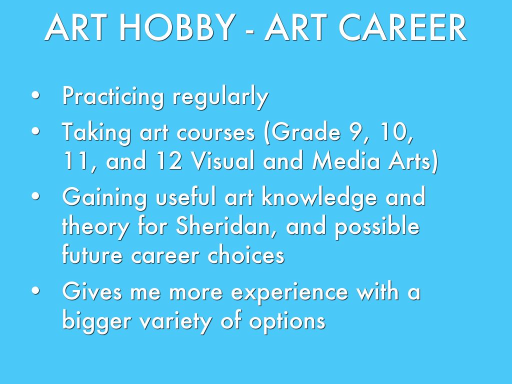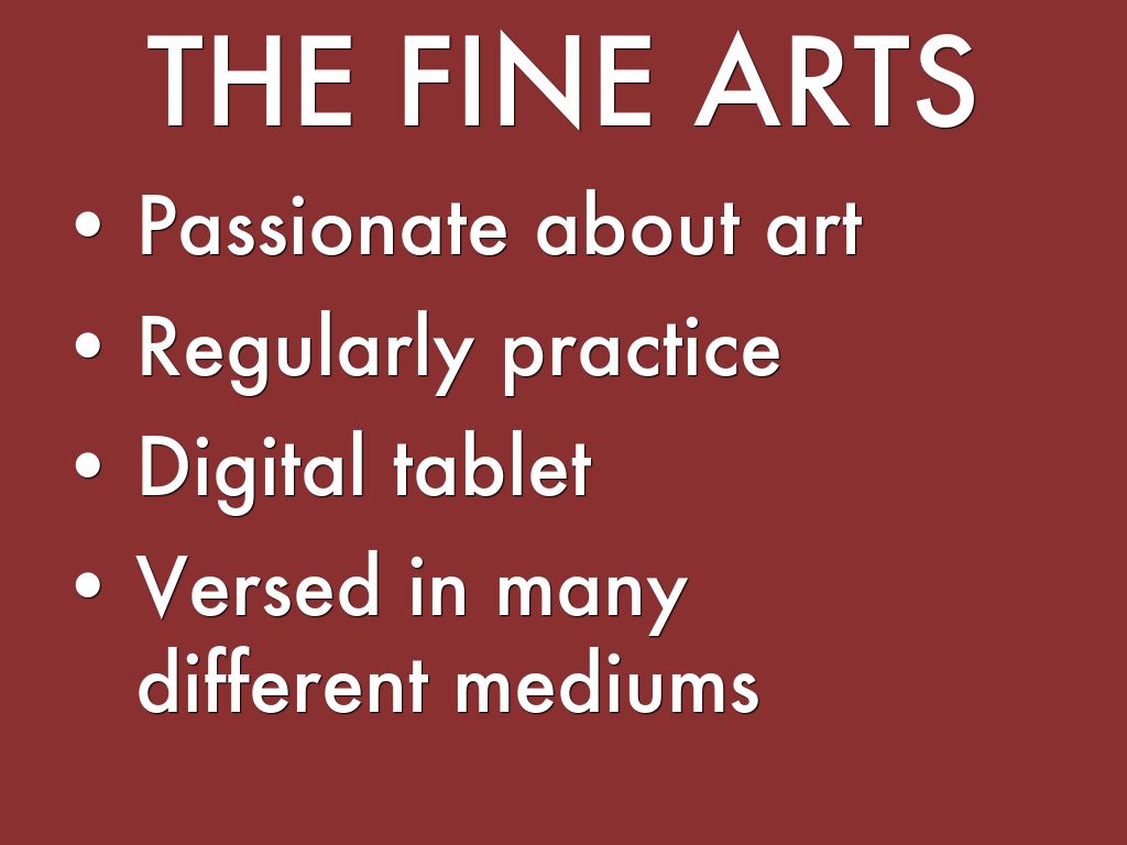 A third strength would definitely be along the lines of my very hard-working attitude. I take a lot of pride in how much I have progressed as an artist over the past couple years, I put in a lot of time and effort into where I am now, and I know that that can be applied to complete any task.