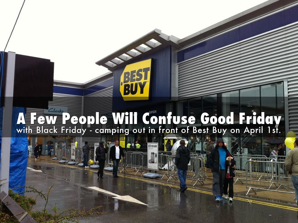 with Black Friday - camping out in front of Best Buy on April 1st.