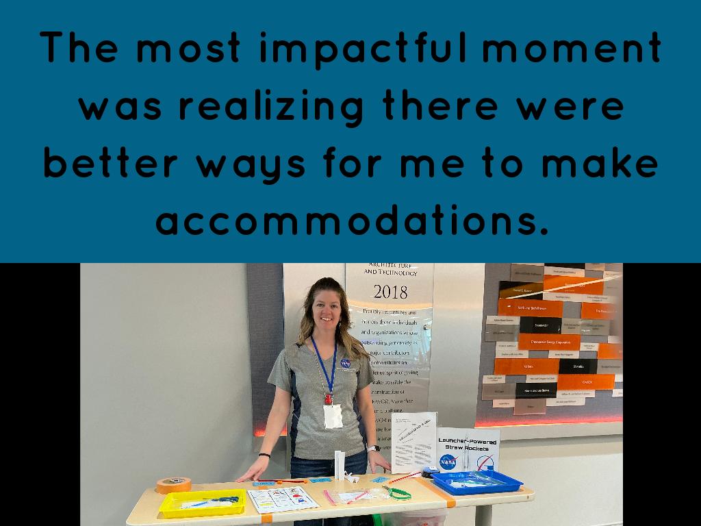 The most impactful moment was realizing there were better ways for me to make accommodations.