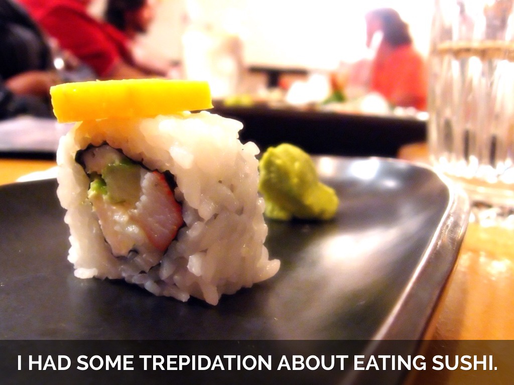 I HAD SOME TREPIDATION ABOUT EATING SUSHI.