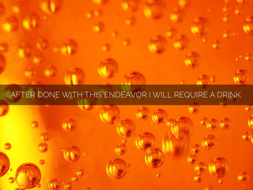 AFTER DONE WITH THIS ENDEAVOR I WILL REQUIRE A DRINK.