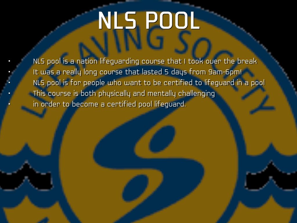 NLS pool is for people who want to be certified to lifeguard in a pool