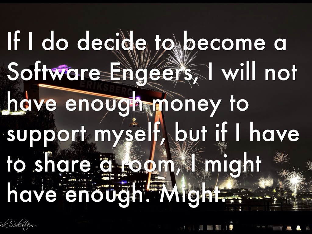 If I do decide to become a Software Engeers, I will not have enough money to support myself, but if I have to share a room, I might have enough. Might.