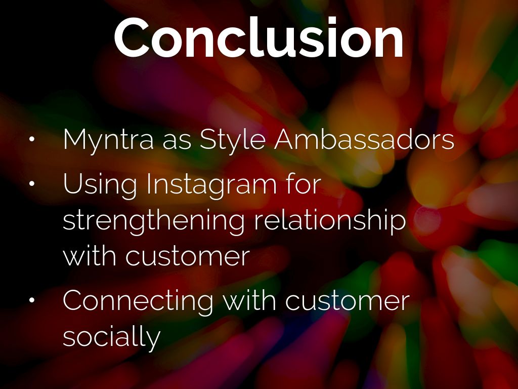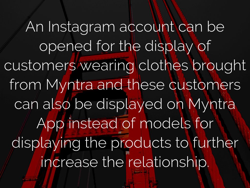 An Instagram account can be opened for the display of customers wearing clothes brought from Myntra and these customers can also be displayed on Myntra App instead of models for displaying the products to further increase the relationship.